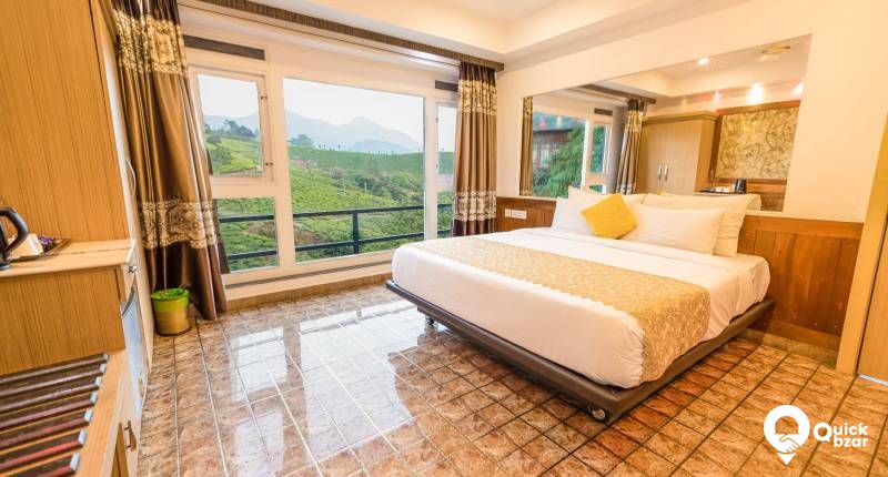 Our Family Interconnected Club Suite, stretching over 750 sq. ft., is designed for families or groups of four. It features a spacious balcony offering expansive views of the lake and mountains. The suite includes a living room, sofa, and minibar, with soundproofing to ensure a peaceful stay. Enjoy the breathtaking 180-to-270-degree tea garden and valley vistas, making this family suite in Munnar a luxurious home away from home.