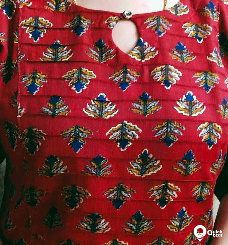 Beautiful Wrinkle mixed cotton side slitted kurti with Pintuck yoke with lining inside